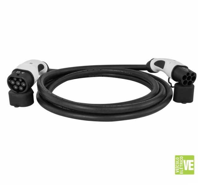 Adaptador para conectar no soquete da estação Tipo 2 para veiculo elétrico tipo 2, com 5 metros de cabo.