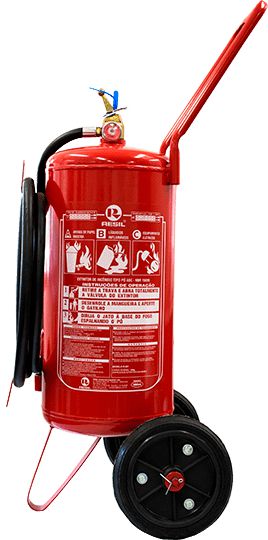 Extintor sobre rodas com carga de 20 kg, Pó ABC, capaz de combater as três principais classes de fogo;