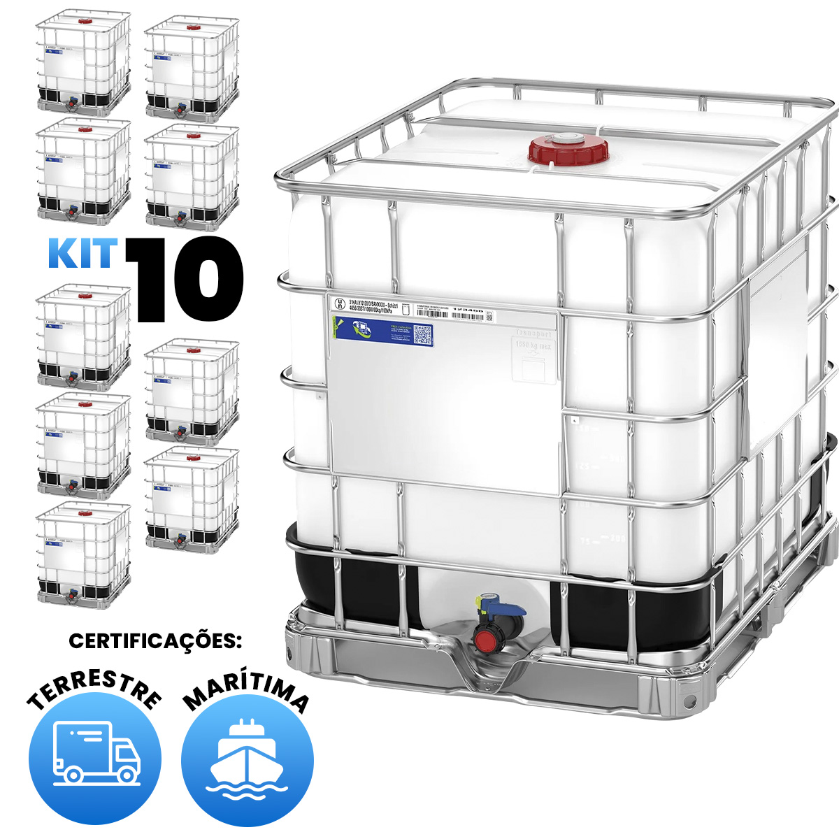 Kit de 10 IBC 1000 Litros Standard - Certificado Terrestre e Marítimo - SeuPosto.Com