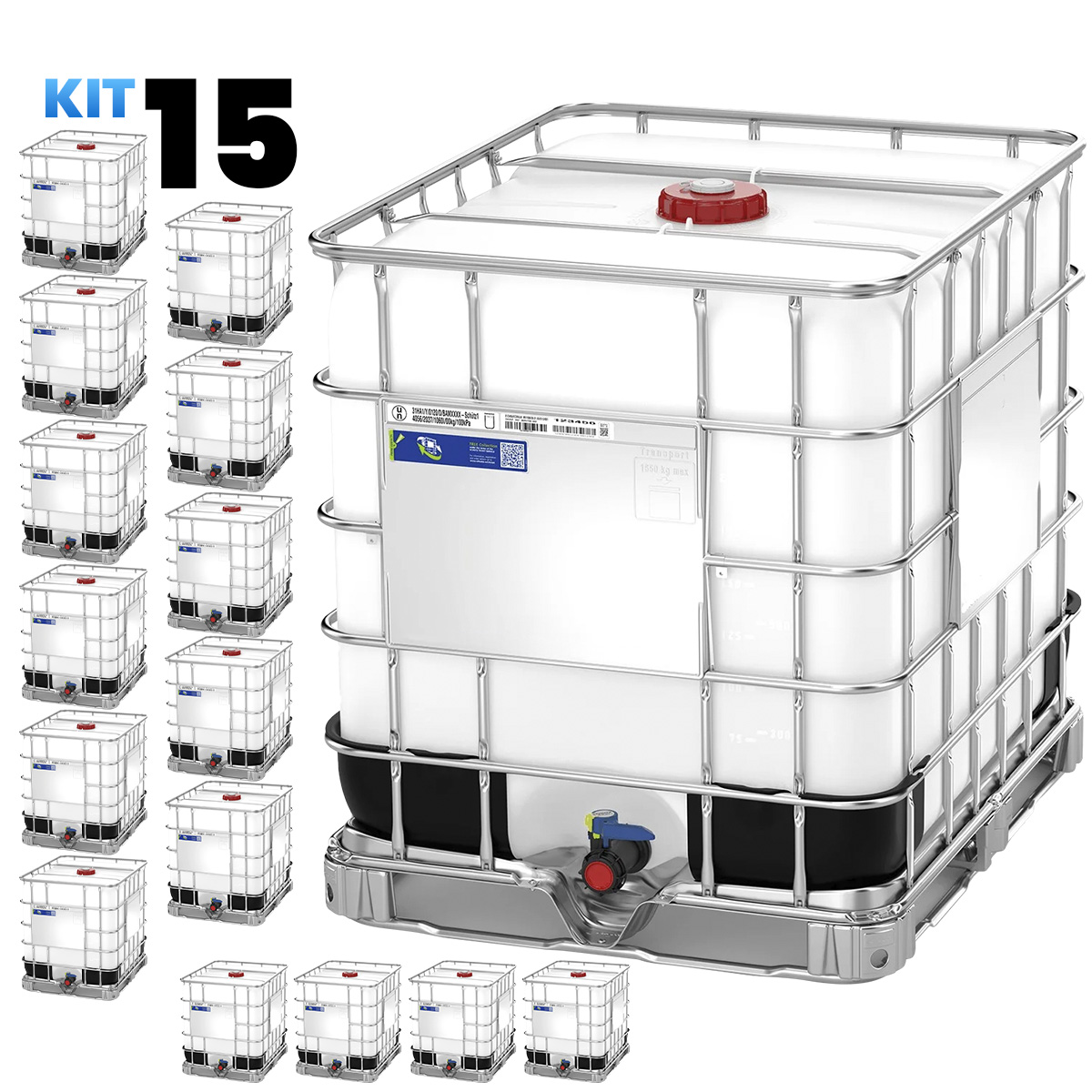 Kit de 15 IBC 1000 Litros - Certificado Terrestre e Marítimo
