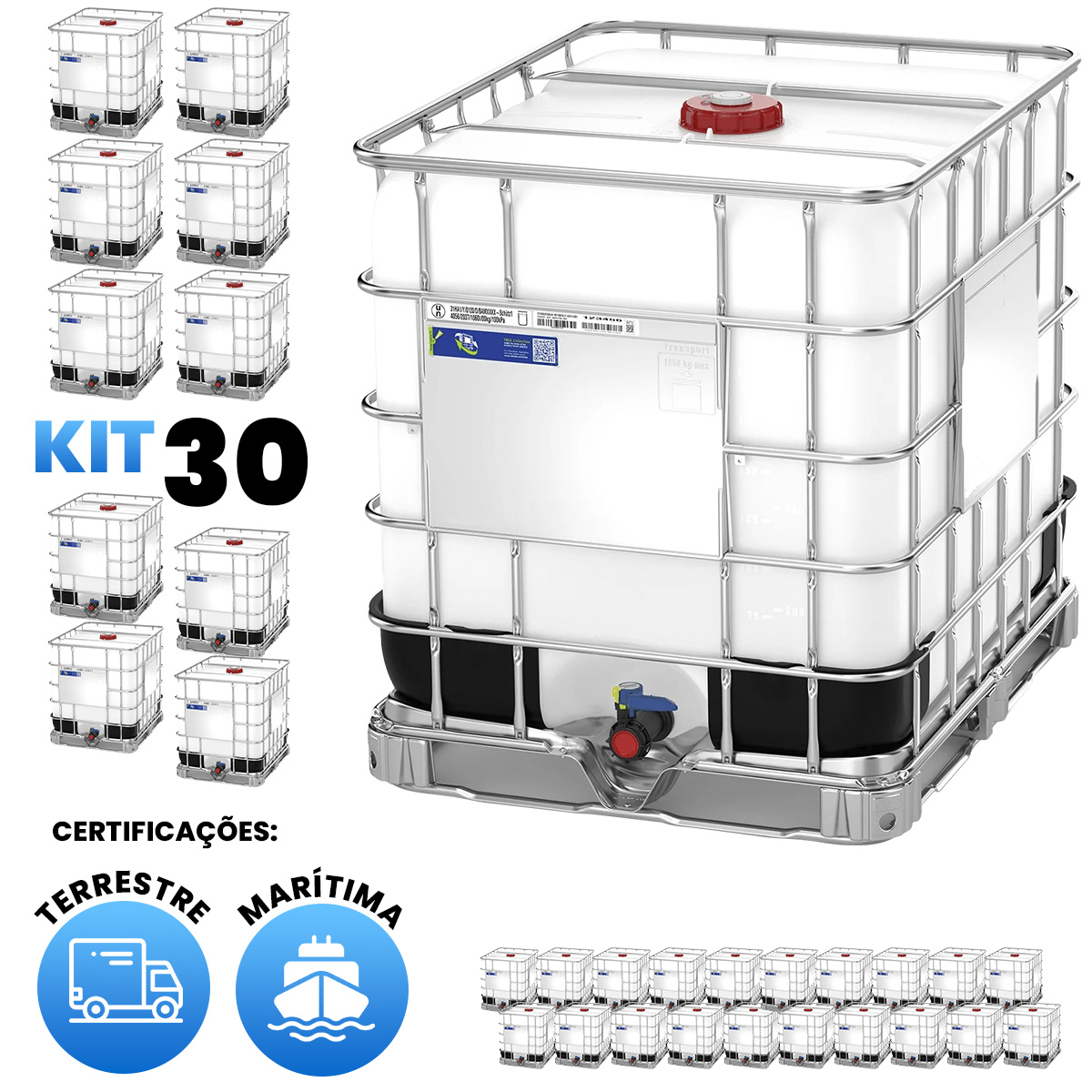 Kit de 30 IBC 1000 Litros Standard - Certificado Terrestre e Marítimo - SeuPosto.Com