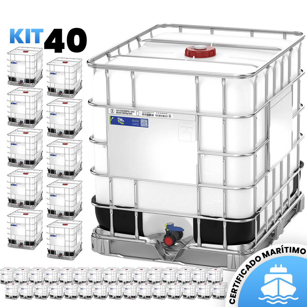 Kit de 40 IBC 1000 Litros Standard - Certificado Terrestre e Marítimo - SeuPosto.Com