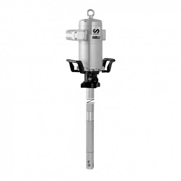 - Propulsora de alta vazão, adaptável a tambores de 200KG. Para aplicações industriais especiais, com motor pneumático de alumínio com cilindros em alumínio anodizado, com apenas 03 partes móveis, ausência de molas, o que reduz as falhas, o consumo de ar comprimido e de energia. Baixo nível de ruído, de acordo com as prescrições normativas OSHA, em todas as pressões de operação.