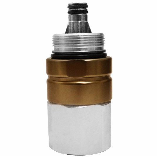 Em alumínio e selos em viton proporciona segurança caso haja rompimento da mangueira de abastecimento.